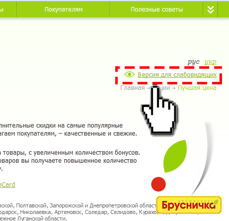 В канун международного дня инвалидов торговая сеть «Брусничка» запустила раздел своего сайта для слабовидящих людей.