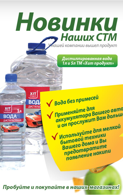 Ассортиментную линейку компании пополнила дистиллированная вода ТМ «Хит продукт», объемом 1 и 5 литров.