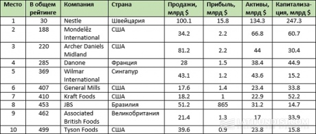 Согласно рейтингу агропортала, первая позиция со значительным отрывом досталась Nestle, которая в общем рейтинге стала 30-й. Капитализация компании оценивается на уровне 247,3 млрд долларов, а объем продаж - в 100,1 млрд долларов.