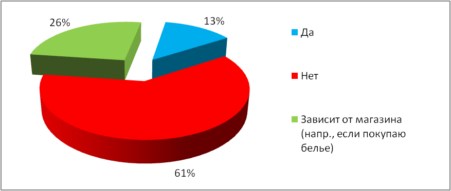 Насколько важен для клиентов пол консультанта зависит и от того, какой именно товар покупатель приобретает. И в этом случае мнения мужчины и женщин разделились. Например, если покупатели выбирают белье, то пол помогающего в выборе сотрудника для женщин на порядок важнее, чем для мужчин: для 50% женщин и 26% мужчин важно, кто будет помогать совершать покупку в случае выбора особенного товара.