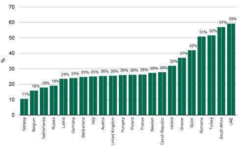 Норвегия - Бельгия - Нидерланды - Россия - Латвия - Германия - Швейцария - Италия - Австрия - Великобритания - Венгрия - Польша - Франция - Швеция - Чехия - Ирландия - Греция - Испания - Румыния - Турция - ЮАР – ОАЭ