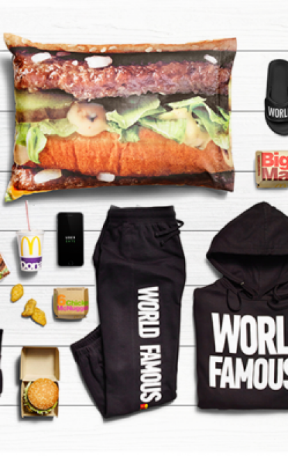 McDonald's в честь празднования первого Всемирного дня доставки McDelivery, 25 июля, представит линейку товаров, в которую вошли комбинезон «Big Mac», костюм для бега «World Famous Fries», наволочки с гамбургерами, постельное белье, покрывало для пикника и другие товары с изображением меню фаст-фудной еды - пишет Sostav.Ru