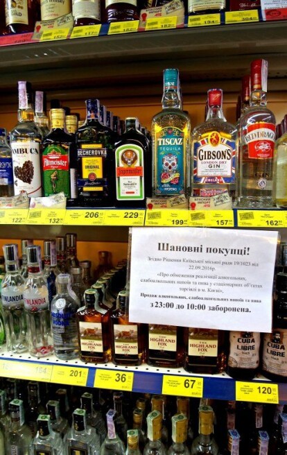 Киевсовет 22 сентября 2016 года ввел запрет на реализацию субъектами хозяйствования, осуществляющими розничную торговлю, алкогольных и слабоалкогольных напитков на территории Киева, с 23:00 до 10:00. Решение вступило в силу 13 октября. Его поддержали 86 депутатов Киевсовета.
