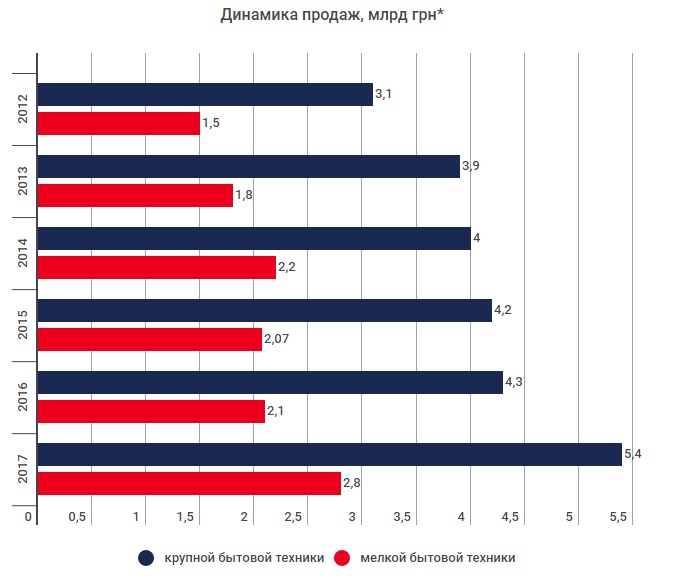 Драйвером рынка в этом году стала крупная бытовая техника. В первом полугодии ее продажи достигли 5,4 млрд грн, что на 24% больше по сравнению с январем-июнем прошлого года.