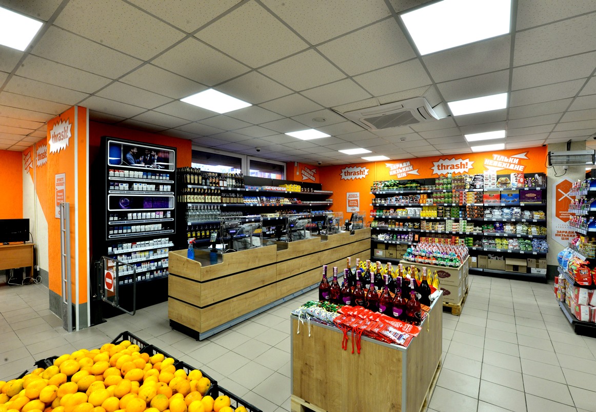 Помимо расширенного ассортимента, новый магазин представил своим гостям больше интересных акционных позиций - до 150-200 на еженедельной основе. В магазине немного отличается оформление торгового зала – стены выкрашены в оранжевый цвет со слоганом сети – «THRASH. Трощимо ціни!». Также новый магазин освещают современные LED-панели, команда THRASH установила новое оборудование, а возле прикассового аппарата теперь появились стеллажи с товарами.