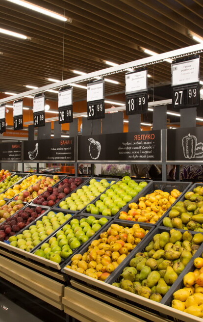 Новый супермаркет VARUS в Запорожье оформлен видеостенами