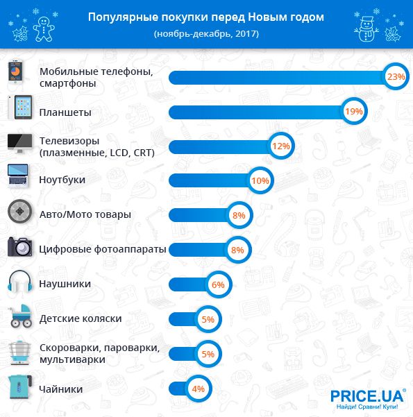 Согласно анализу покупок более 1 миллиона жителей Украины, перед новогодними праздниками повысился интерес к бытовой технике, смартфонам, планшетам и телевизорам.