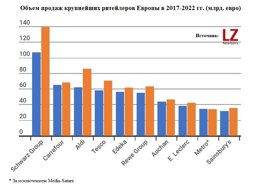 Крупнейший британский ритейлер, усиленный поглощением оптовой компании Booker, играет мышцами. Хорошие финансовые результаты, зафиксированные практически на всех европейских рынках и во всех форматах в Великобритании, указывают, по мнению аналитиков LZ Retailytics, о том, что сеть укрепит свое лидерство на Туманном Альбионе. В Tesco также говорят, что готовы конкурировать с Amazon и с сетями дискаунтеров. К 2023 году компания может обогнать Carrefour и стать третьим по величине розничным продавцом в Европе.