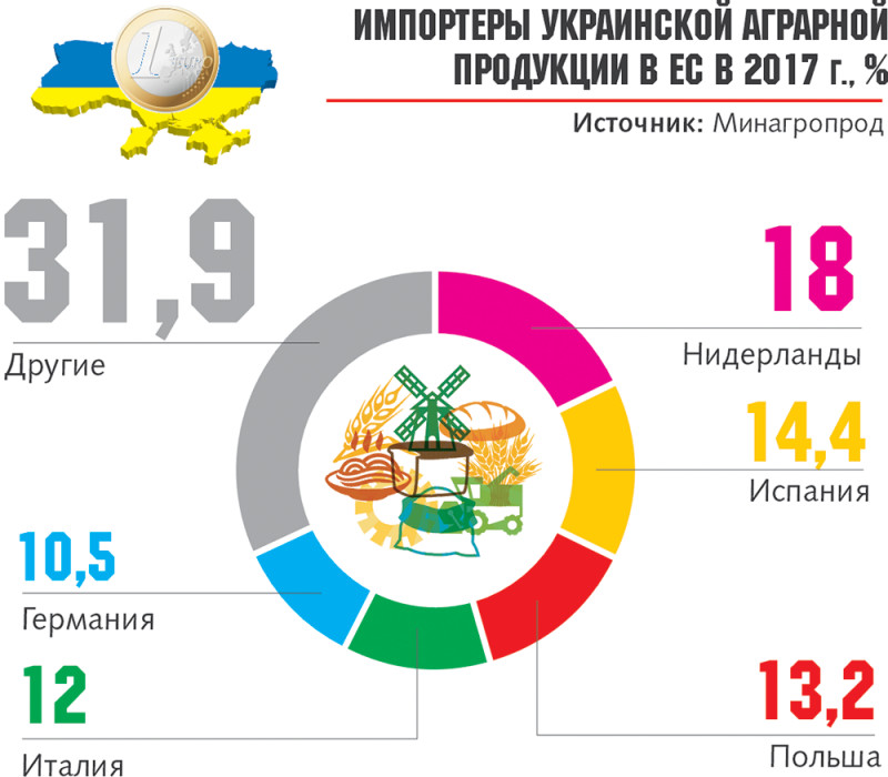 В 2017 г., по данным Еврокомиссии, экспорт украинской агропродукции в страны Евросоюза увеличился на 1,2 млрд евро и составил почти 5,5 млрд евро.