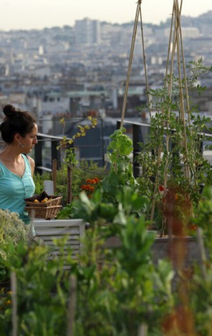 Расположенный на крыше огород площадью 360 кв. метров также генерирует электроэнергию благодаря установленным там солнечным коллекторам.