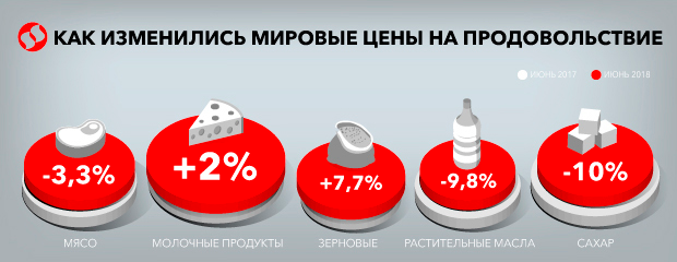За год (июнь к июню) индекс мировых цен на продовольствие снизился на 1,36%. При этом подорожали молочные продукты и зерновая группа.