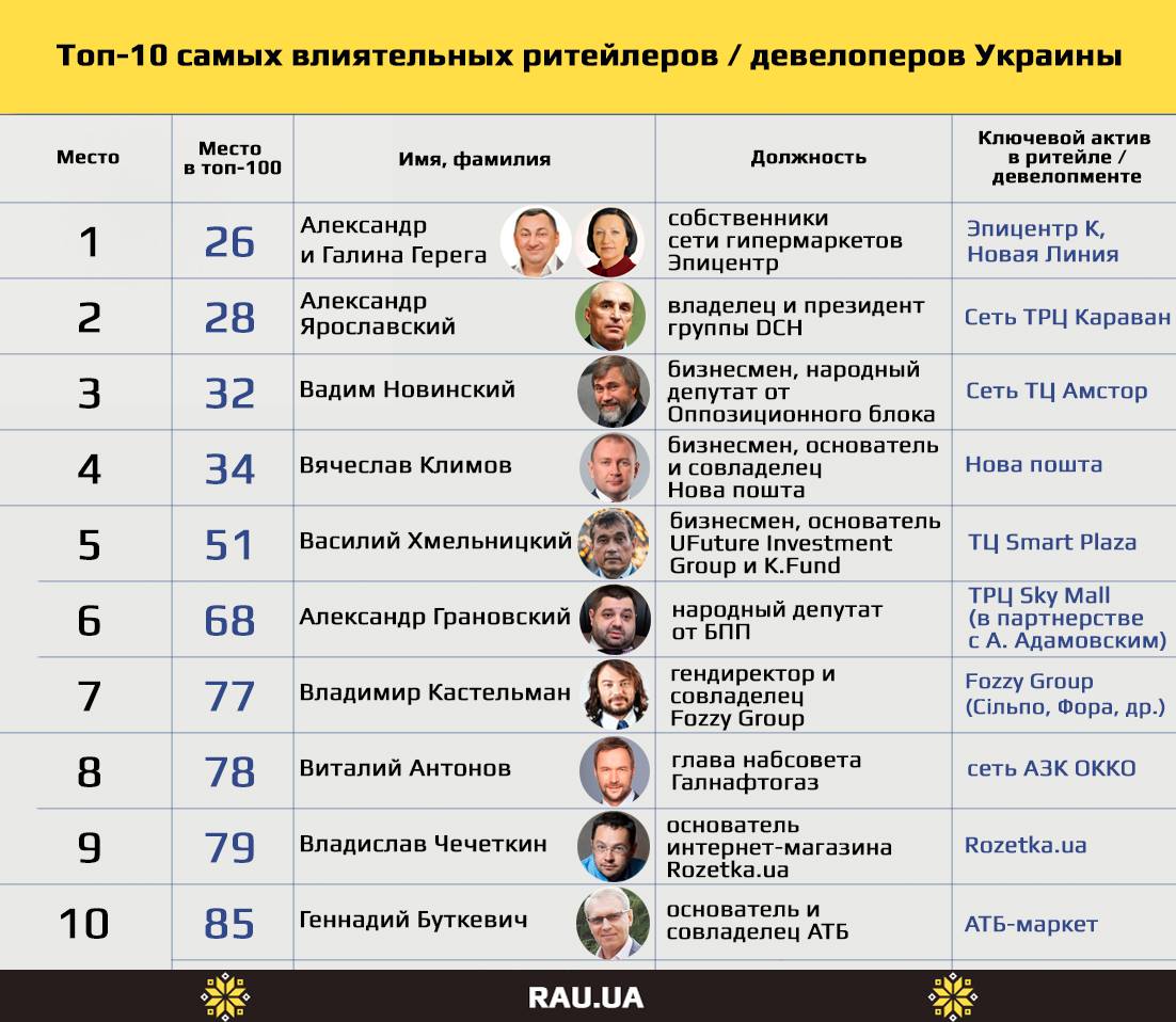Топ-10: самые влиятельные ритейлеры и девелоперы Украины
