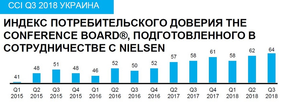 После падения в начале года индекс потребительского доверия в Украине продолжил расти и в третьем квартале достиг отметки в 64 пункта (+2 пункта по сравнению со ІІ кварталом) - передает rau.ua