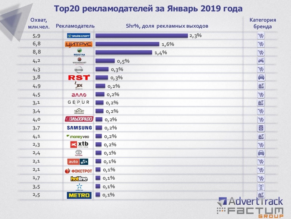 Топ рекламодателей в интернете в январе: Драйв Спорт, Цитрус и Rozetka