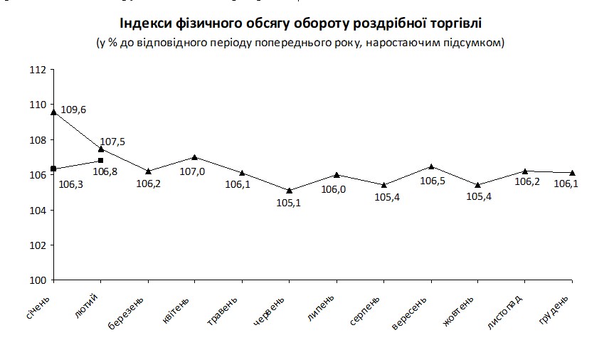 В феврале розничный товарооборот в Украине составил 73,9 млрд грн