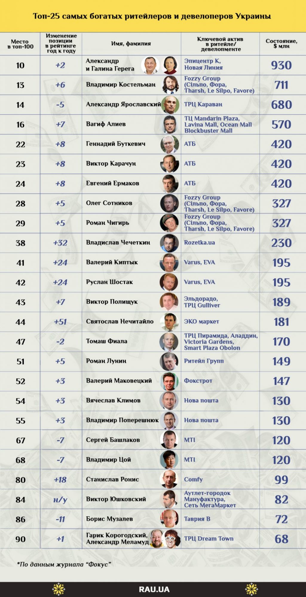 Топ-25: самые богатые ритейлеры и девелоперы Украины по версии журнала Фокус