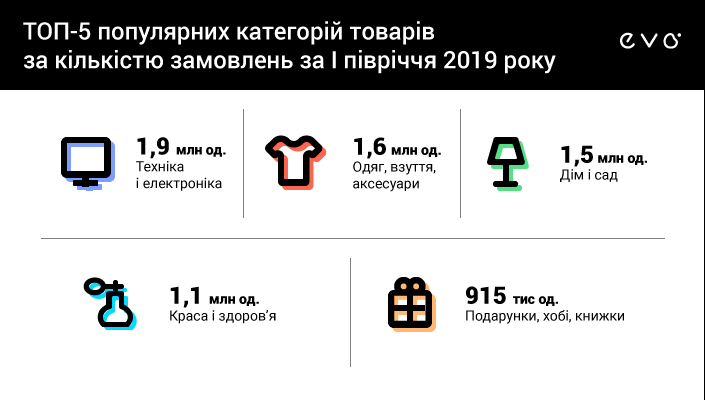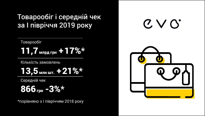 Группа EVO, объединяющая маркетплейсы Prom, Bigl, Shafa и Crafta, отчиталась о результатах работы в первом полугодии 2019-го: какие товары чаще всего покупают украинцы, как растет количество заказов, «мобильных» транзакций и средний чек.