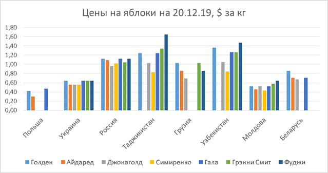 Согласно результатам, яблоки и бананы дешевле всего покупать в Украине. Средние цены на эти продукты составляют €0,56 и €0,97 соответственно.