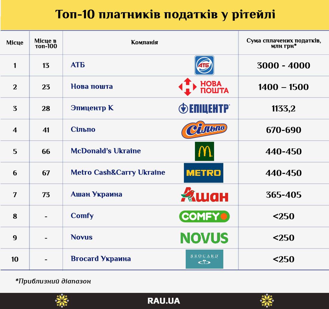 Топ-15 плательщиков налогов в ритейле и девелопменте Украины: АТБ, Эпицентр, Сільпо и другие