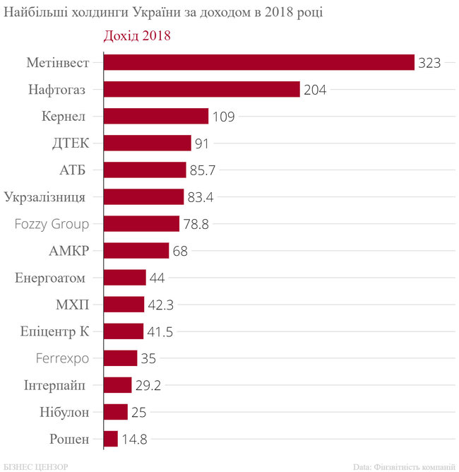 Крупнейшим холдингом Украины по доходу в 2018 году стал Метинвест Рината Ахметова - 323 млрд. грн.