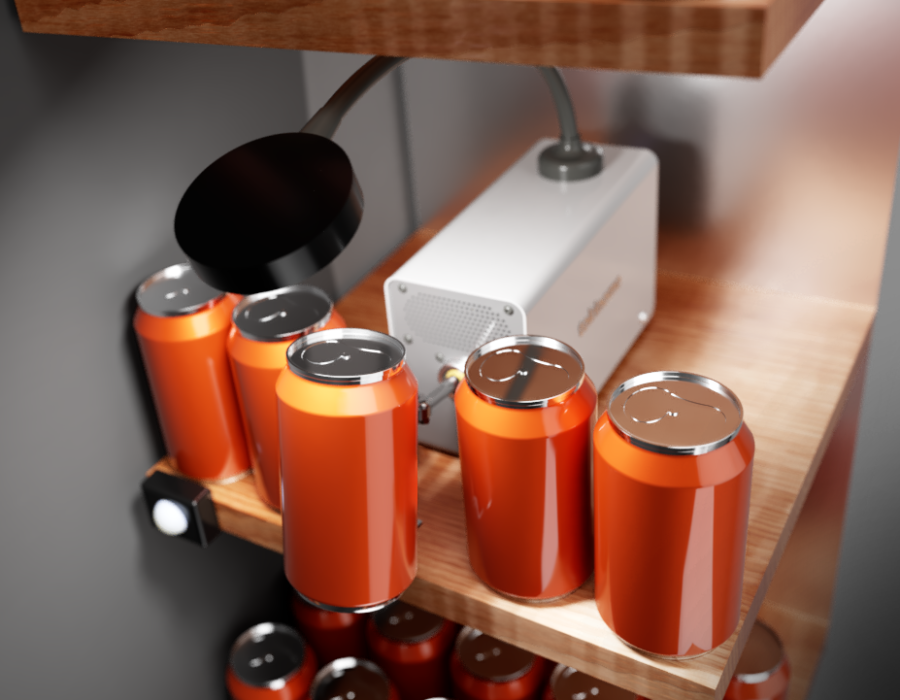 В передній частині пристрою встановлений сенсор руху, який приводить механізм в дію лише коли повз нього проходить людина. Система спрацьовує і продукт починає рухатись, привертаючи увагу споживача одразу дією, звуком та світлом.