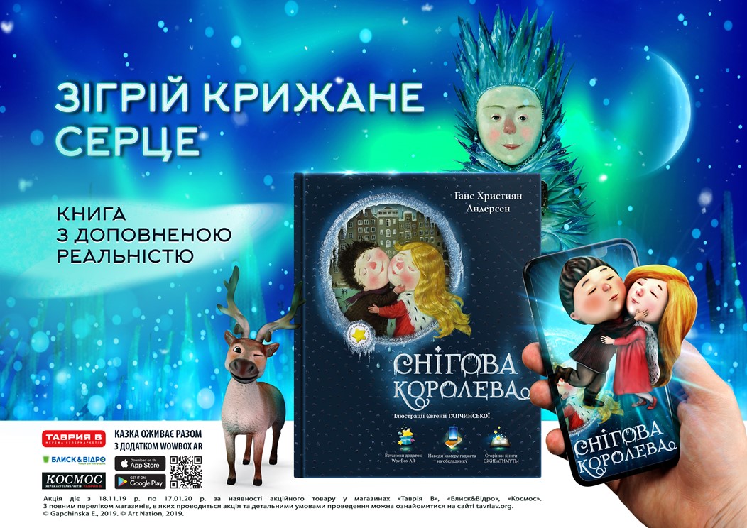 Чем уникальна книга? Иллюстрации для новой “Снежной королевы” создавала известная украинская художница Евгения Гапчинская. Обложка книги и 7 иллюстраций превращаются в анимацию с помощью приложения WowBox AR, которое также позволяет слушать аудиоверсию сказки на 3-х языках (русском, украинском, английском), делать фото и видео с любимыми персонажами. Читатели могут сразу же делиться контентом с друзьями в социальных сетях, вовлекая их в волшебный сказочный мир. Таким образом, прочтение книги становится увлекательным семейным досугом, которое объединяет поколения детей и взрослых. Первые положительные отклики уже публикуются в социальных сетях, хотя акция только началась. Контент с дополненной реальностью имеет виральный эффект, что повышает интерес к самой книге.