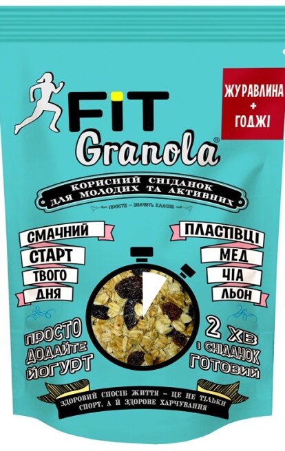 FIT Granola была создана для людей, которые активно занимаются спортом и следят за своей фигурой. Разработчики сознательно отказались от орехов, имеющих большое количество жиров в своем составе, и заменили их сушеными ягодами, чтобы завтрак потребителей был не только вкусным, но и витаминным.