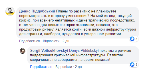 В свою очередь, Денис Поддубский выразил мнение, что текущий кризис, при всех его негативных и даже трагических последствиях не только для людей, но и для целых секторов экономики, наглядно показал, что продуктовый ритейл является частью критически важной инфраструктуры нашей страны и, наоборот, нуждается сейчас в ускоренном развитии.