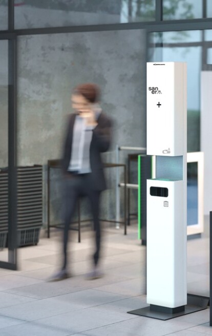 Интегрировать процесс дезинфекции в социальное пространство, обеспечить людей удобным "ассистентом", сделать гигиену бескомпромиссным правилом - вот чем руководствовалась команда Modern Expo, создавая автоматическую станцию дезинфекции рук Saner.