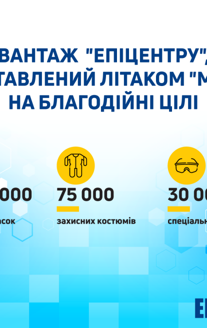 С начала распространения коронавирусной инфекции компания «Эпицентр» откликнулась на инициативу президента Украины Владимира Зеленского относительно обеспечения учреждений здравоохранения необходимыми средствами защиты и оборудованием для борьбы с СОVID-19.