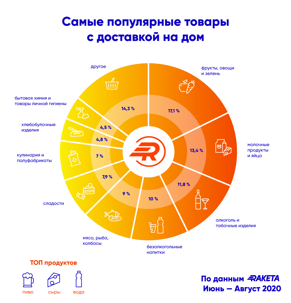 Карантинные ограничения повлияли не только на режим дня, но и на потребительские привычки украинцев. Большинство жителей крупных городов открыли для себя преимущества доставки еды и продуктов на дом. После снятия жестких ограничений тенденция к онлайн-покупкам из супермаркетов только увеличилась. Сервис доставки еды и продуктов Raketa проанализировал, какие продукты украинцы чаще всего заказывали на дом этим летом.