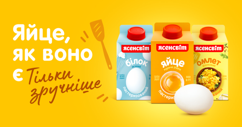 В октябре 2020 года на полках украинских магазинов появилась новинка — жидкие яичные продукты «ЯСЕНСВИТ» в небольших картонных упаковках. Удобные паки на 500 г с закручивающейся крышкой, произведены из поддающегося вторичной переработке картона Pure Pak. В основе продукта — свежее куриное яйцо собственных птицефабрик «ЯСЕНСВИТ».