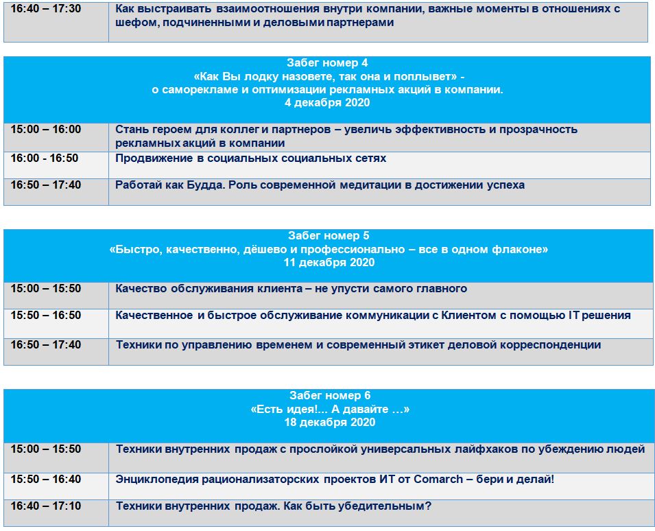 Приглашаем Вас с 13 ноября по 21 декабря принять активное участие в онлайн марафоне, который будет состоять из 7 вебинаров — 30 часов практики с участием 11 экспертов по коммуникации, психологии, переговорам и специалистами лидера рынка по внедрению ИТ решений в сегменте В2В компании COMARCH.