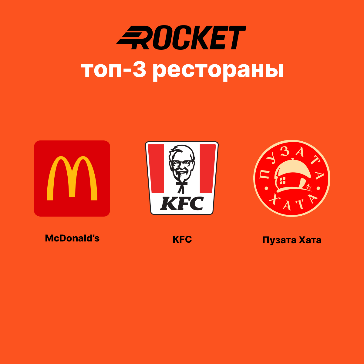 Кроме того, в компании составили рейтинг самых популярных ресторанов 2020-го года, доставку из которых осуществляет Rocket. Первое и второе место остается за ресторанами быстрого питания — McDonald’s и KFC. На третьем месте расположилась сеть ресторанов домашней еды — «‎Пузата хата».