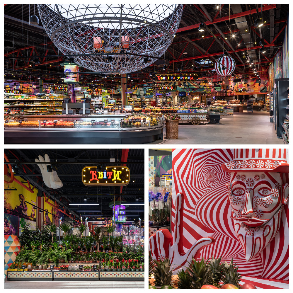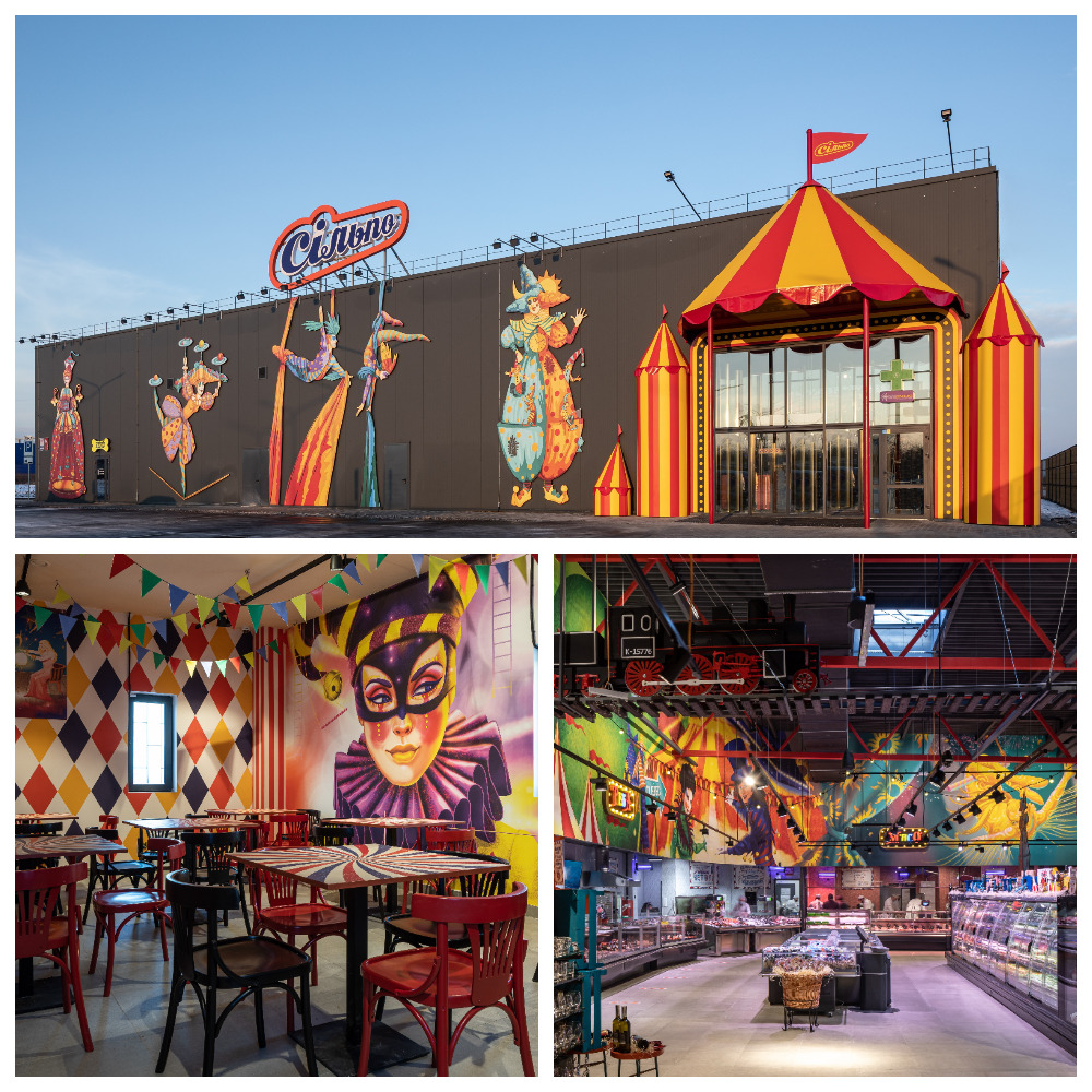 1798 м кв. торгового зала — огромный манеж, на котором ежедневно происходят фантастические зрелища и представлены удивительный ассортимент. Повсюду на стенах — винтажные образы и иллюстрации трюков и по истории цирка, из-под потолка выпрыгивают эквилибристы, прямо в магазине есть воздушный шар и «Куля сміливості», но самое интересное — на полках.