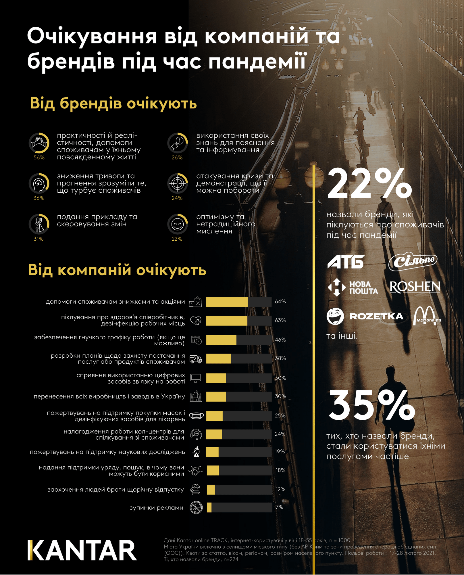 Практичность и реалистичность, помощь в повседневной жизни — этого всего ожидают украинцы от брендов во время пандемии (56%).
