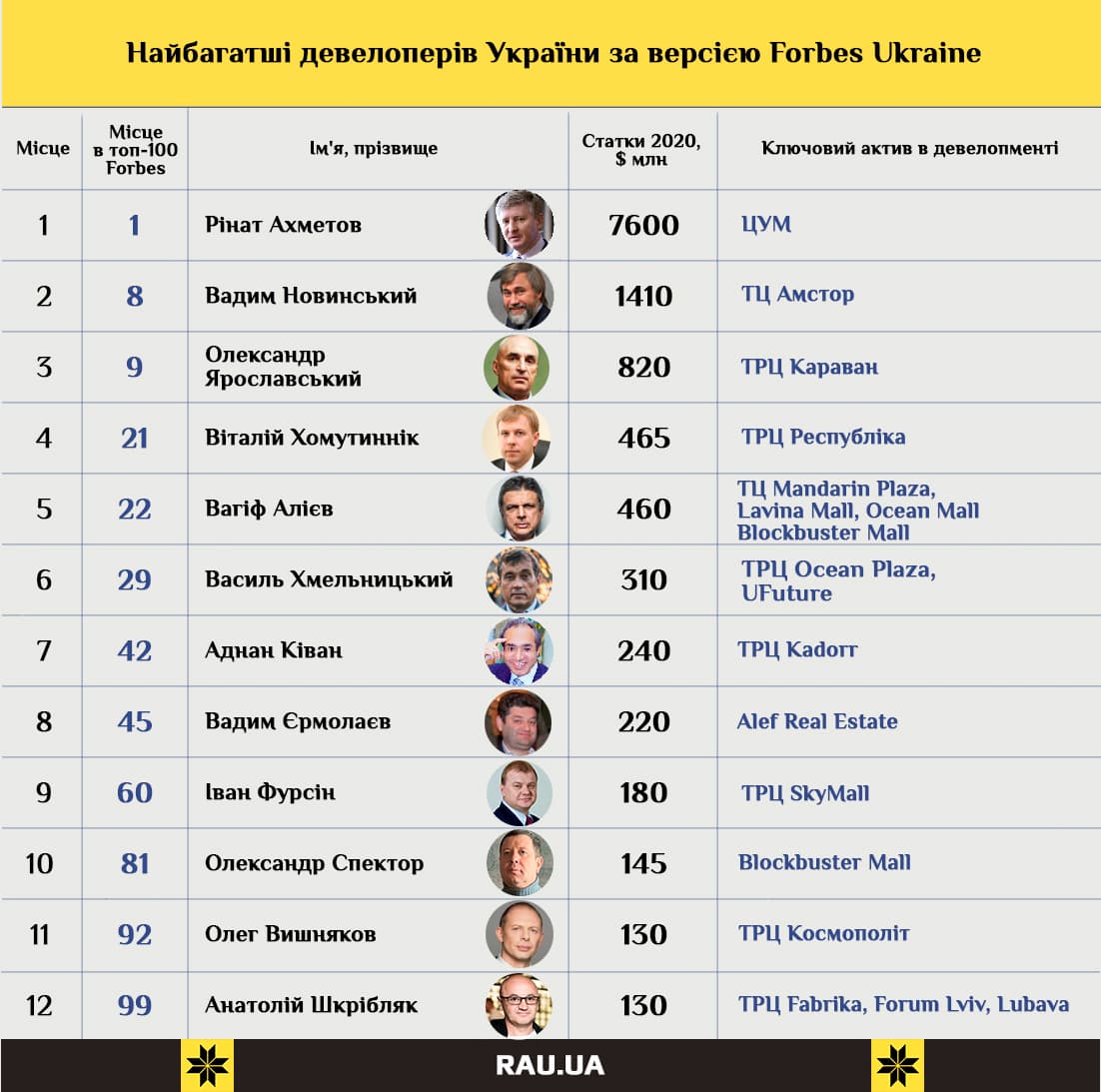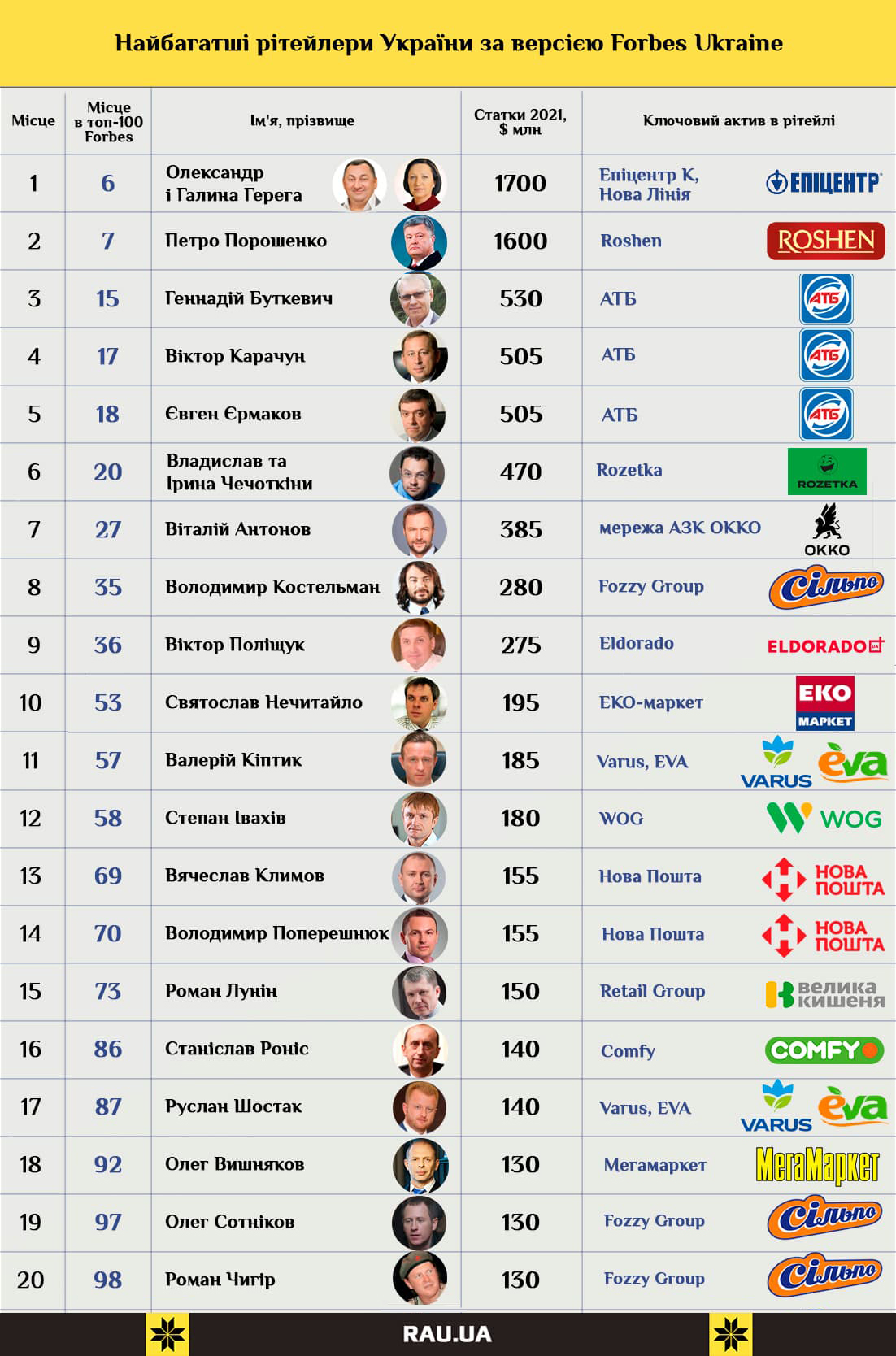 Самые богатые ритейлеры и девелоперы Украины по версии журнала Forbes Ukraine
