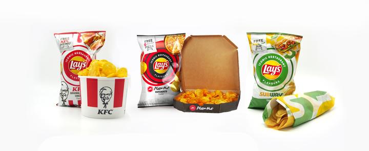 Lay’s даже получил упаковку от брендов ресторанов, чтобы воспроизвести вкус оригинальных блюд.