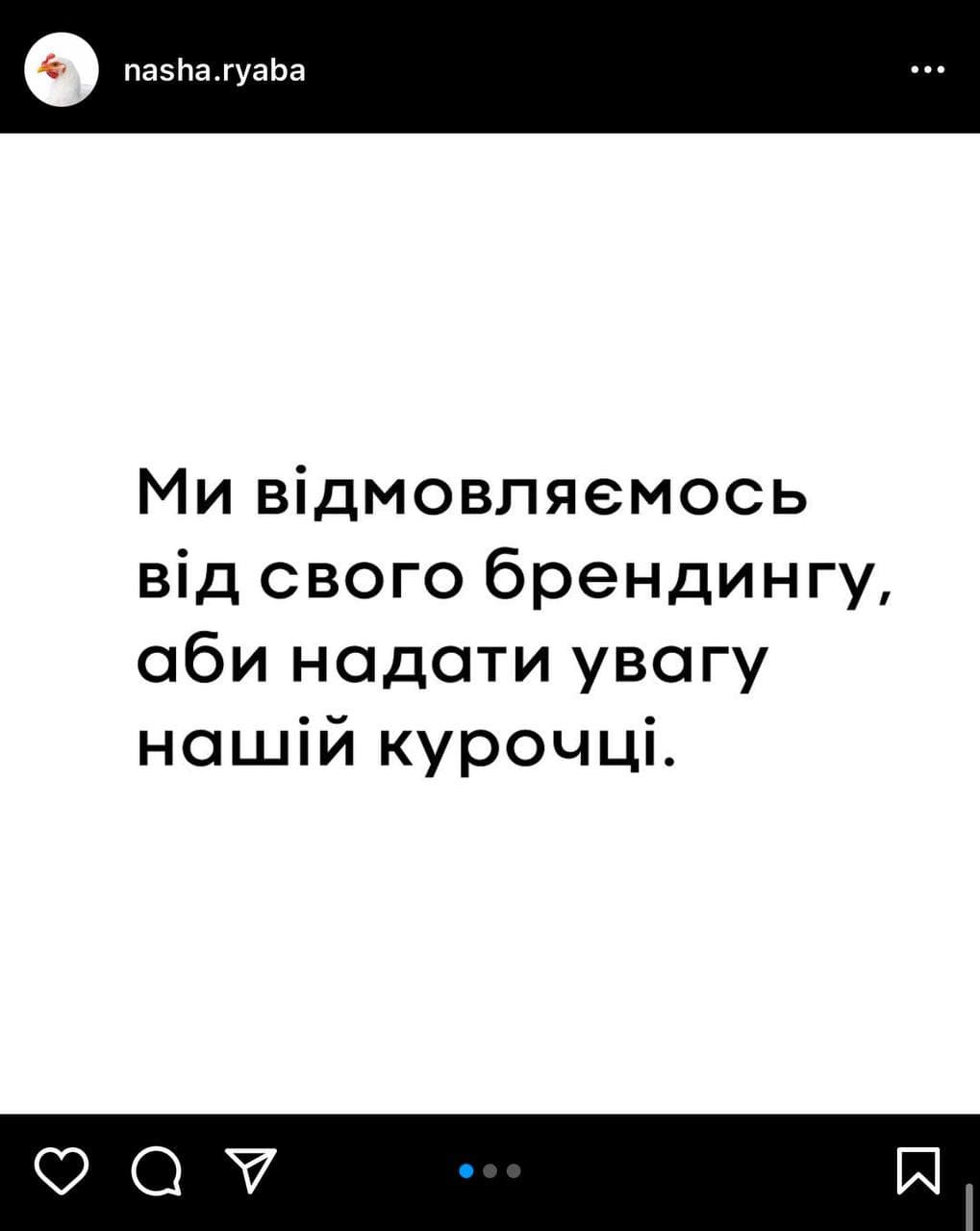 На своей странице в Instagram бренд оставил загадочное сообщение о том, что отказывается от брендинга, чтобы уделить внимание курочке. На полках в магазинах также появился новый бренд курятины «Та самая курочка».