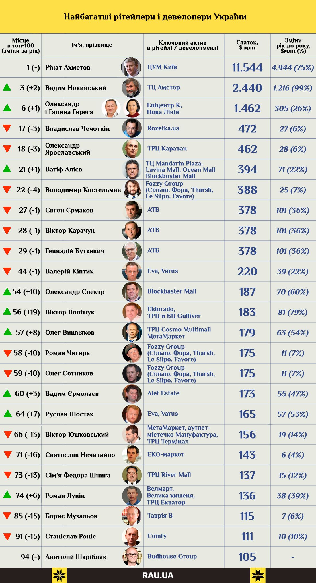 Редакция RAU проанализировала составленный список и выбрала из него 25 бизнесменов, имеющих прямое отношение к ритейлу и девелопменту ТРЦ: