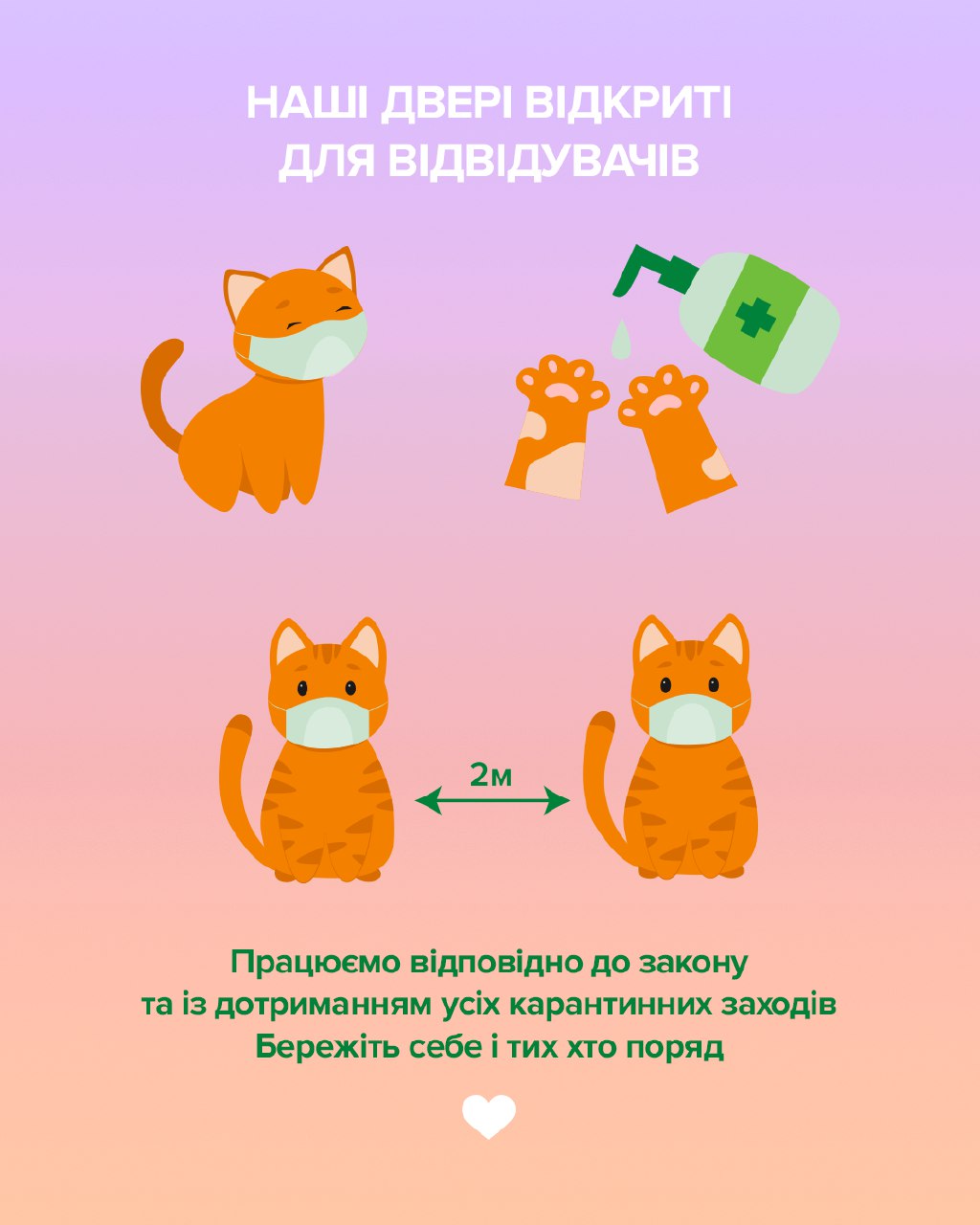 Линия магазинов EVA, как участник правительственной программы «Пакет малыша», имея в ассортименте более 78% товаров категории «Средства гигиены», а также изделий медицинского назначения и товаров бытовой химии, активно сохраняет социально ответственную позицию и должным образом соблюдает все карантинные нормы. Потребители обслуживаются исключительно с ограничениями, предусмотренными постановлением КМУ № 1236: контроль количества человек в помещении, наличие и правильное использование потребителями средств индивидуальной защиты, соблюдение дистанции, контроль скопления, периодические дезинфекционные мероприятия и т.д.