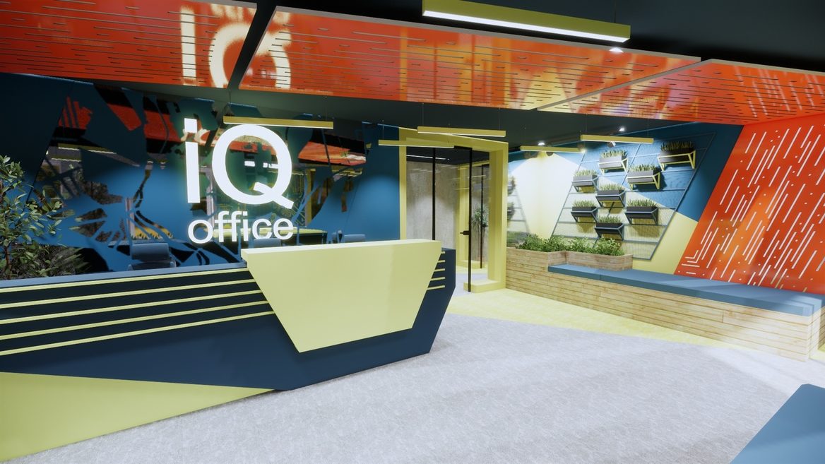Рабочее пространство IQ-офиса организовано в формате зон open space с несколькими отдельными кабинетами и креативными зонами релакса. Здесь разместились рабочие локации как IT-Hub, контакт-центр ГК «Эпицентр», Digital Innovation Hub и центр Business Data Analytics.