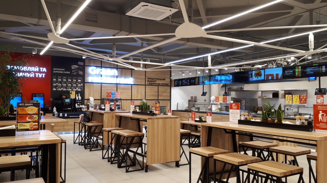 Еще одна фишка нового «Велмарт» — большая зона фудкорта с открытой кухней. В Graan restaurant посетители могут заказать пиццу, бургеры, пасту, фри, шашлык, салаты, супы, отдельного внимания заслуживают блюда азиатской кухни.