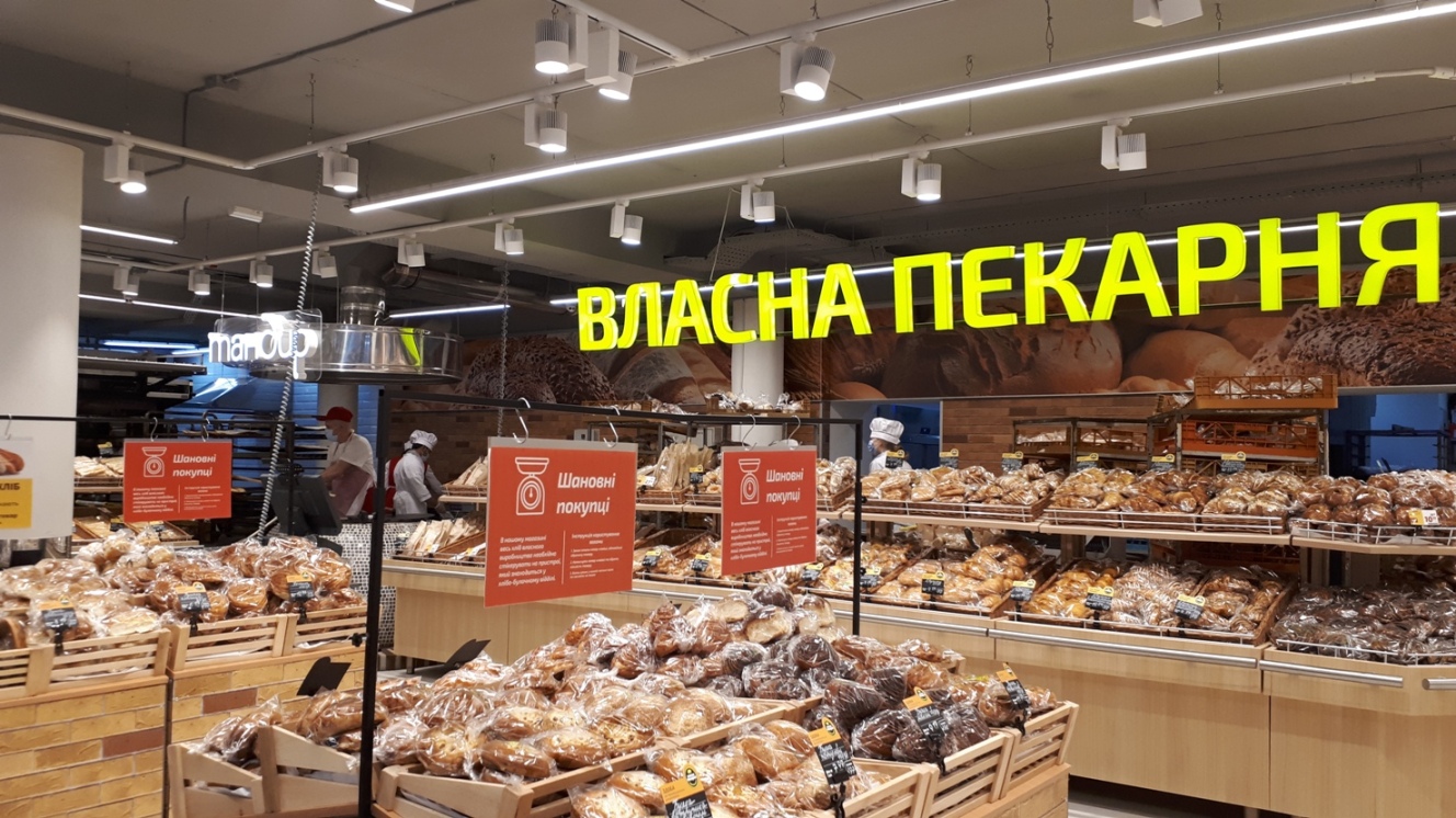 В обновленном магазине покупателей ждет современная собственная пекарня с тандыром, где всегда есть свежая выпечка, модернизированное мясное и рыбное производство, кулинария, а также широкий выбор товаров, формирующих потребительскую корзину украинцев, — продукты питания, большое разнообразие товаров для дома, канцтовары, игрушки, посуда, товары для детей, косметика, товары для животных и многое другое. Регулярно обновляются сезонные предложения, каждую неделю покупателям предлагают акционные «Товары недели». Всего на полках представлено около 17 000 SKU.
