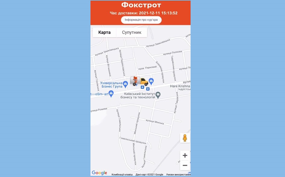 Один из крупнейших ритейлеров электронной и бытовой техники — сеть Фокстрот — запустил сервис по отслеживанию заказа в режиме реального времени в день доставки. Эта опция активна во всех городах присутствия собственной курьерской службы, которая покрывает более 30 крупных городов и их спутники: Киев, Одесса, Днепр, Запорожье, Львов, Харьков, Черкассы, Сумы, Полтава, Тернополь, Житомир, Винница и другие .