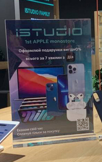 В кредитной программе принимают участие все офлайн-магазины сети iSTUDIO. Процедура заключения кредитного соглашения происходит просто и длится около 10 минут с момента подписания документов и до получения товара покупателем. Идентификация личности клиента происходит мгновенно по ID-карте или загранпаспорту в приложении Дія. После этого заключается кредитный договор и далее банк-партнер выполняет платежное поручение.