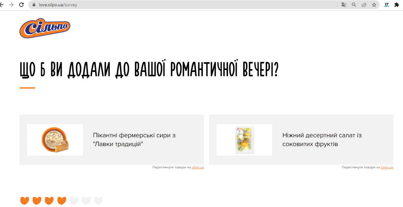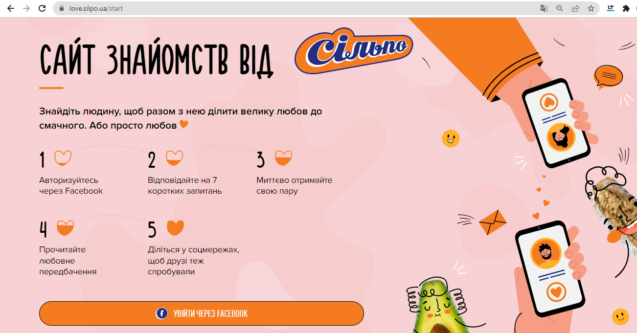 Сеть супермаркетов «Сільпо» запустила сайт знакомств, приуроченный к 14 февраля. С помощью сервиса человек может найти себе пару по общим гастрономическим предпочтениям.