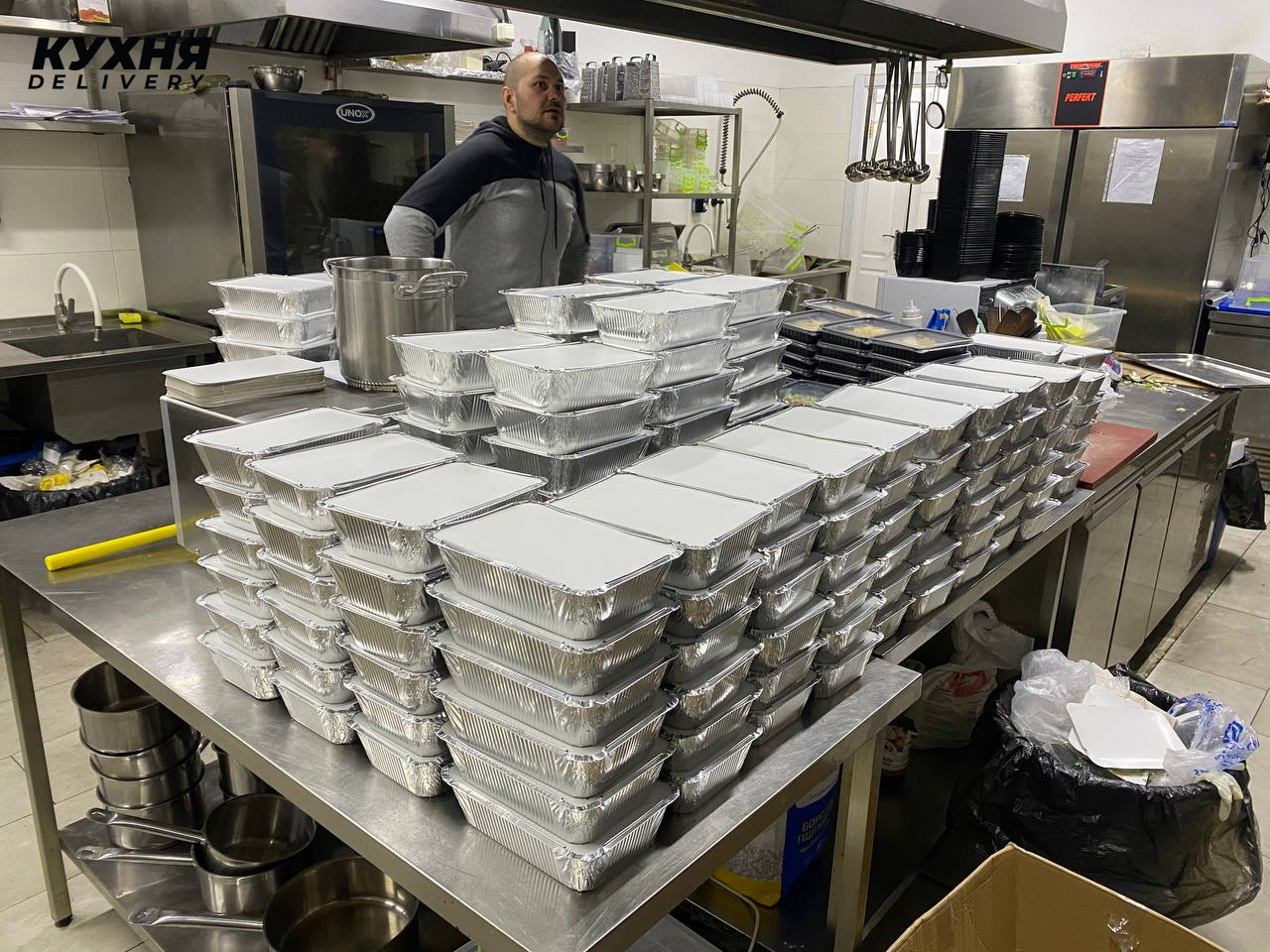 До 24 февраля в арсенале проекта Кухня Delivery было пять локаций «облачных кухонь», на которых готовили блюда шести кулинарных брендов — от украинской и азиатской кухни до уличной еды. В конце февраля команда решила вернуться к работе, чтобы готовить и доставлять бесплатно обеды для нуждающихся. Для этого команда перезапустила работу трех локаций — двух на левом берегу и одной на правом, аккумулировала имеющиеся ресурсы: поваров, продукты, упаковку, финансы.