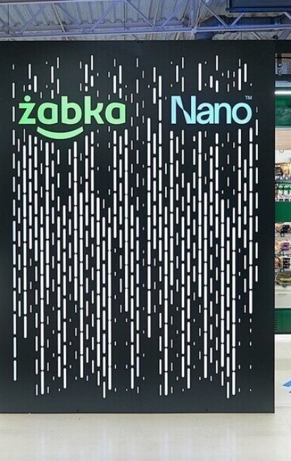 Żabka Nano — формат, запущенный в прошлом году, сейчас насчитывает более 50 таких точек. Это самые современные магазины, полные камер и датчиков, позволяющие идентифицировать движения клиентов и продукты. В магазине нет касс, оплата взимается автоматически при выходе из магазина при наличии приложения Żabka и добавленной к нему платежной карты.