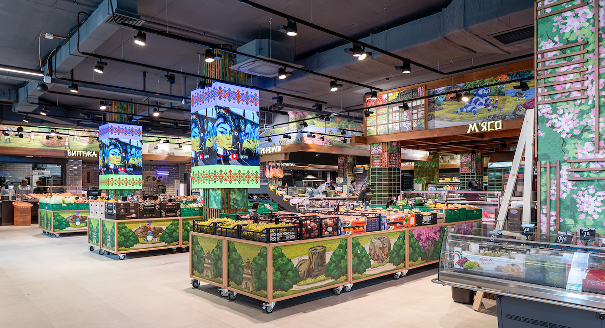 Этот супермаркет планировали открыть весной во время цветения сакуры в Ужгороде. Однако полномасштабное вторжение РФ помешало. Поэтому сейчас магазин в «скромном» формате. Дизайн элементы только те, которые успели выполнить зимой. Все оборудование, которое не было закуплено в прошлом году, мы по крохе собирали из вынужденно неработающих магазинов.